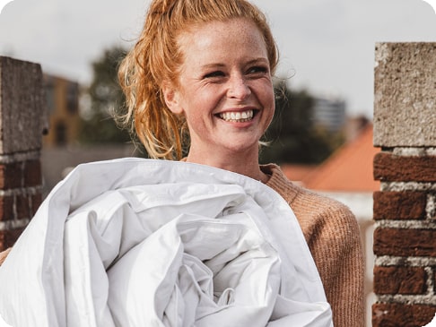 Kies een warmteklasse die past bij jouw persoonlijke behoeften en het seizoen. Een warm dekbed voor de winter of een licht exemplaar voor de zomer. Je kunt ook twee dekbedden combineren – dat is onze 4-seizoenenversie. Die bestaat uit twee losse dekbedden: één voor de zomer en één voor de lente/herfst. Wanneer je ze aan elkaar bevestigt, heb je een perfect winterdekbed. Handig, toch?